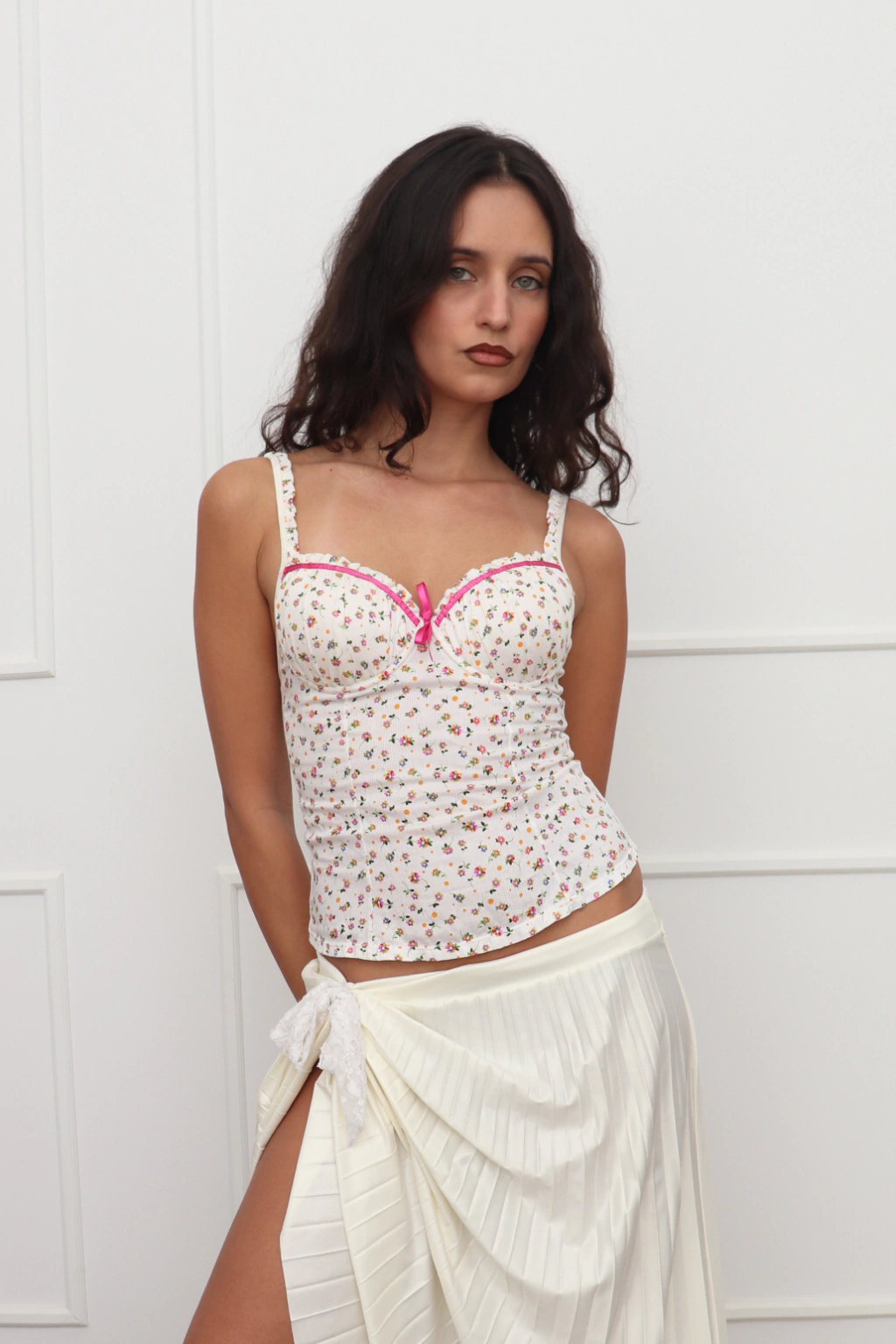 Blusa tipo corset florido. Fechamento por colchete de uma casa y bojo de tela levemente acolchoado, sem enchimento. Tecido 92% algodão 8% elastano.