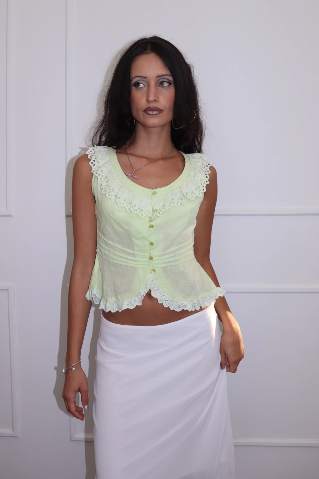 Blusinha romântica inspiração de Mirror Palais. Tecido leve e macio em algodão.