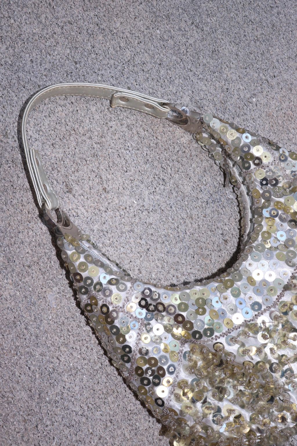 Bolsa de ombro com lantejoulas. Espaçosa. Condição 9,8/10 y pequena avaria na alça, vide fotos.