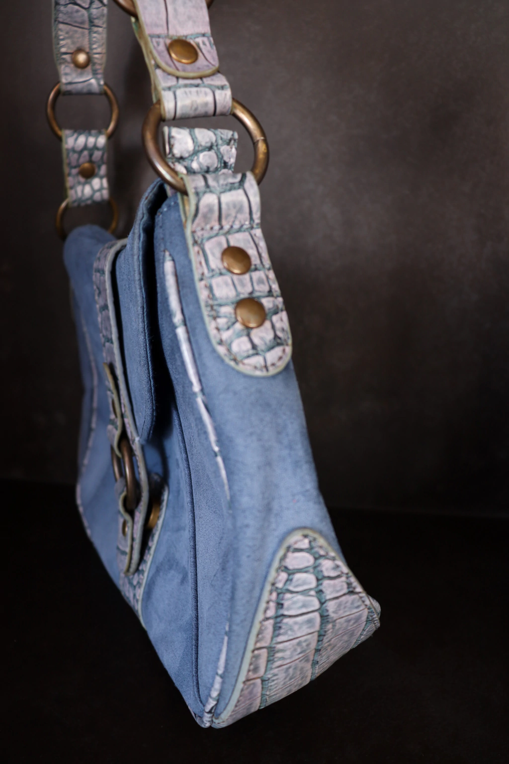 Bolsa azul da Chenson em camurça com detalhes em croco. Condição 9,9/10 com camurça sem manchas y nova.