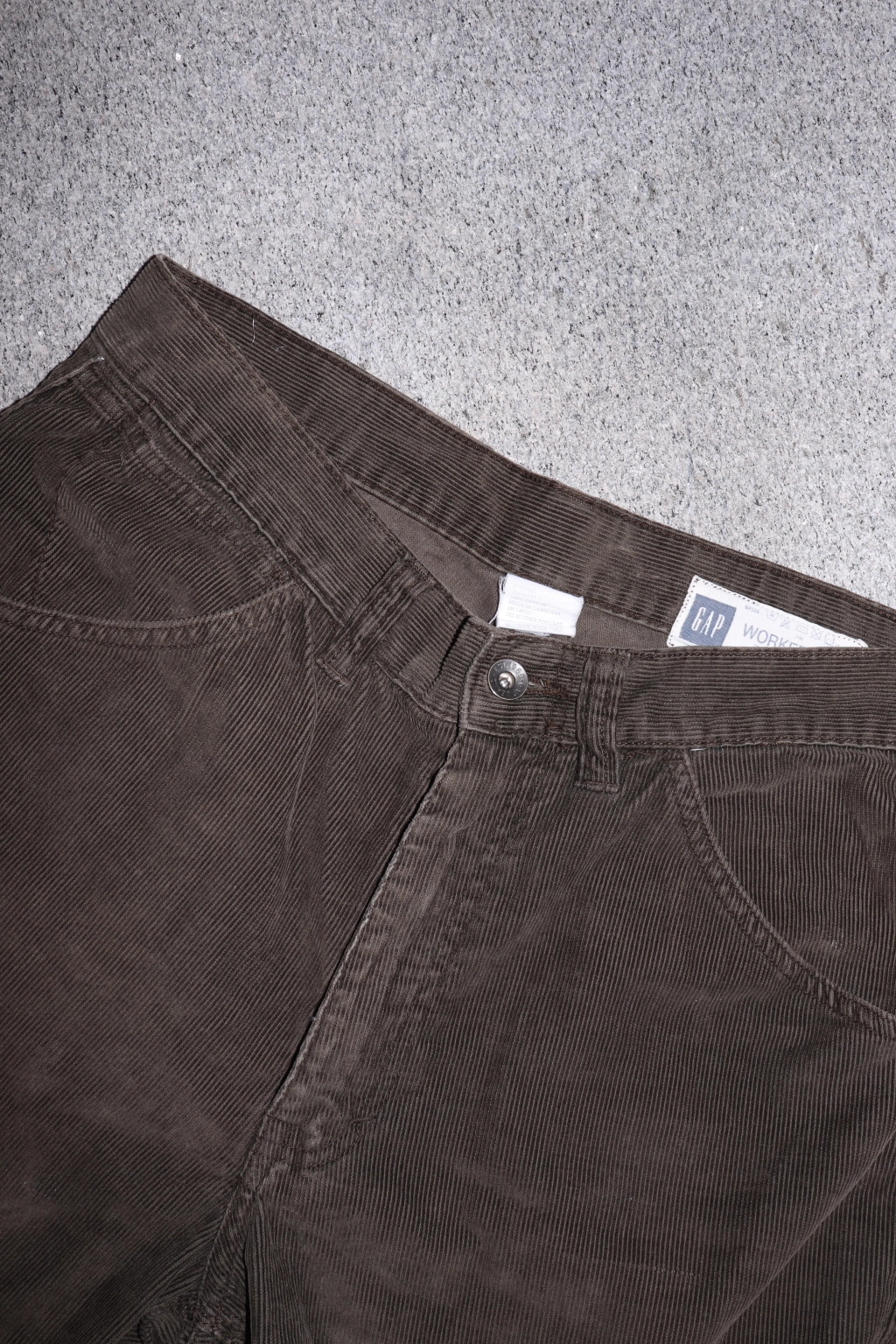 Calça em veludo cotelê marrom da Gap, modelo Workwear. Tecido 100% algodão.