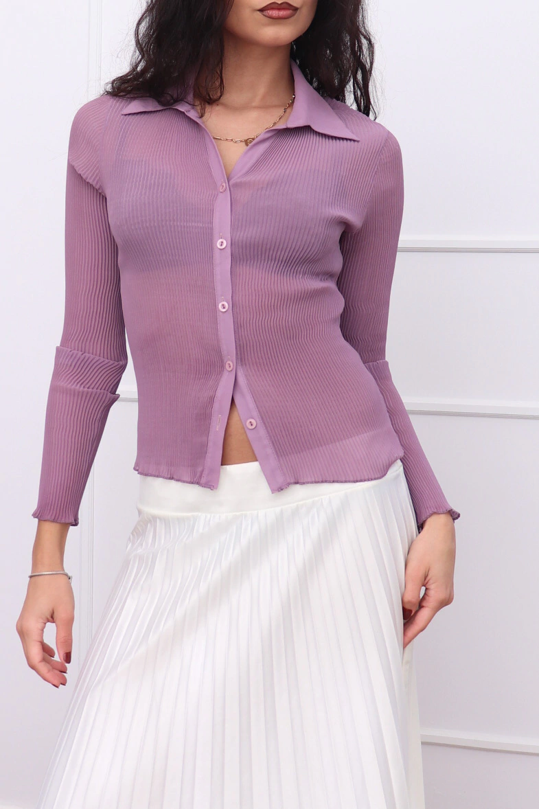 Camisa plissada lilás. Condição 9,8/10. Tecido estica.