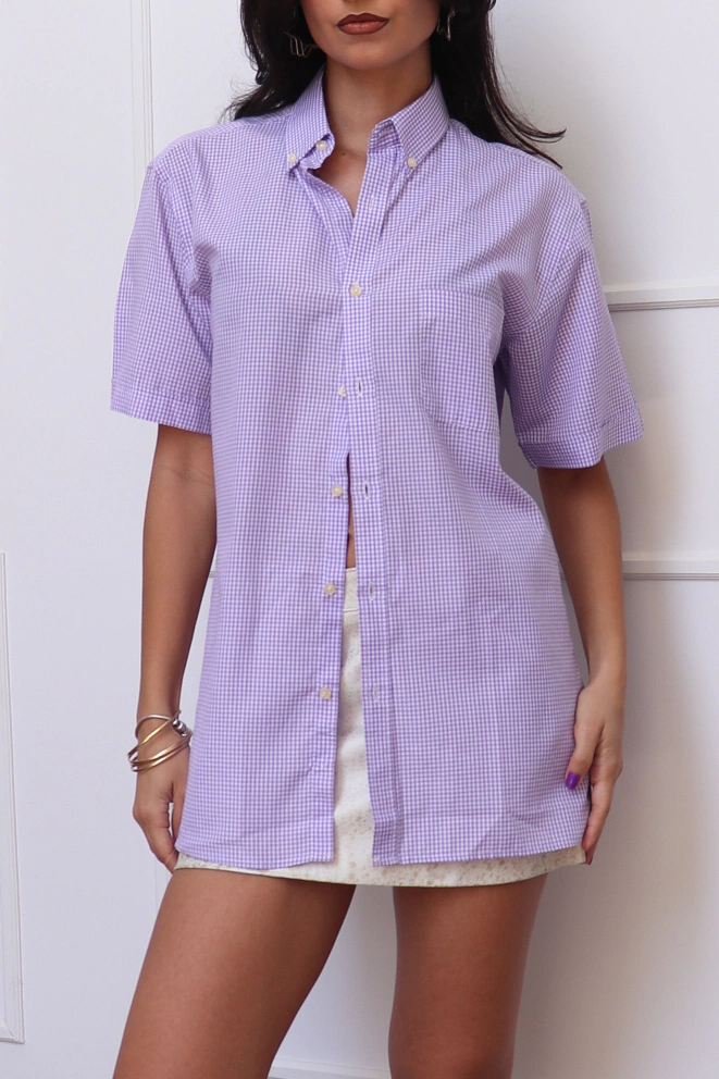 Camisa quadriculada em branco y lilás da Emporio Colombo. Tecido 80% poliester 20% algodão.