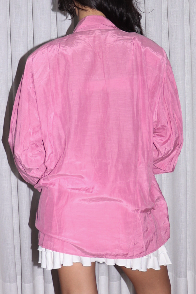Camisa de botão y manga longa. Possui ombreiras. Tecido 53% seda 47% algodão. Veste P/M oversized.