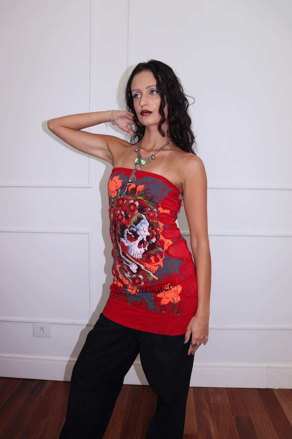 Blusa/Vestido Christian Audigier. 100% algodão com forro em tule visivel na abertura lateral. Condição 9,7/10.