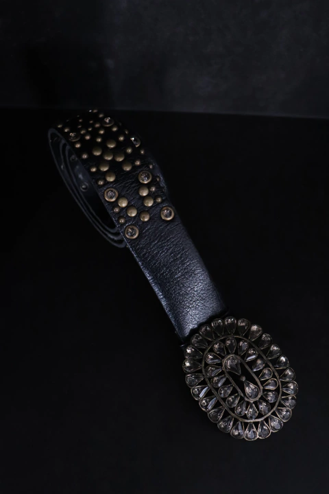 Cinto preto de ilhós y pedrarias. Toda pedraria em perfeito estado.