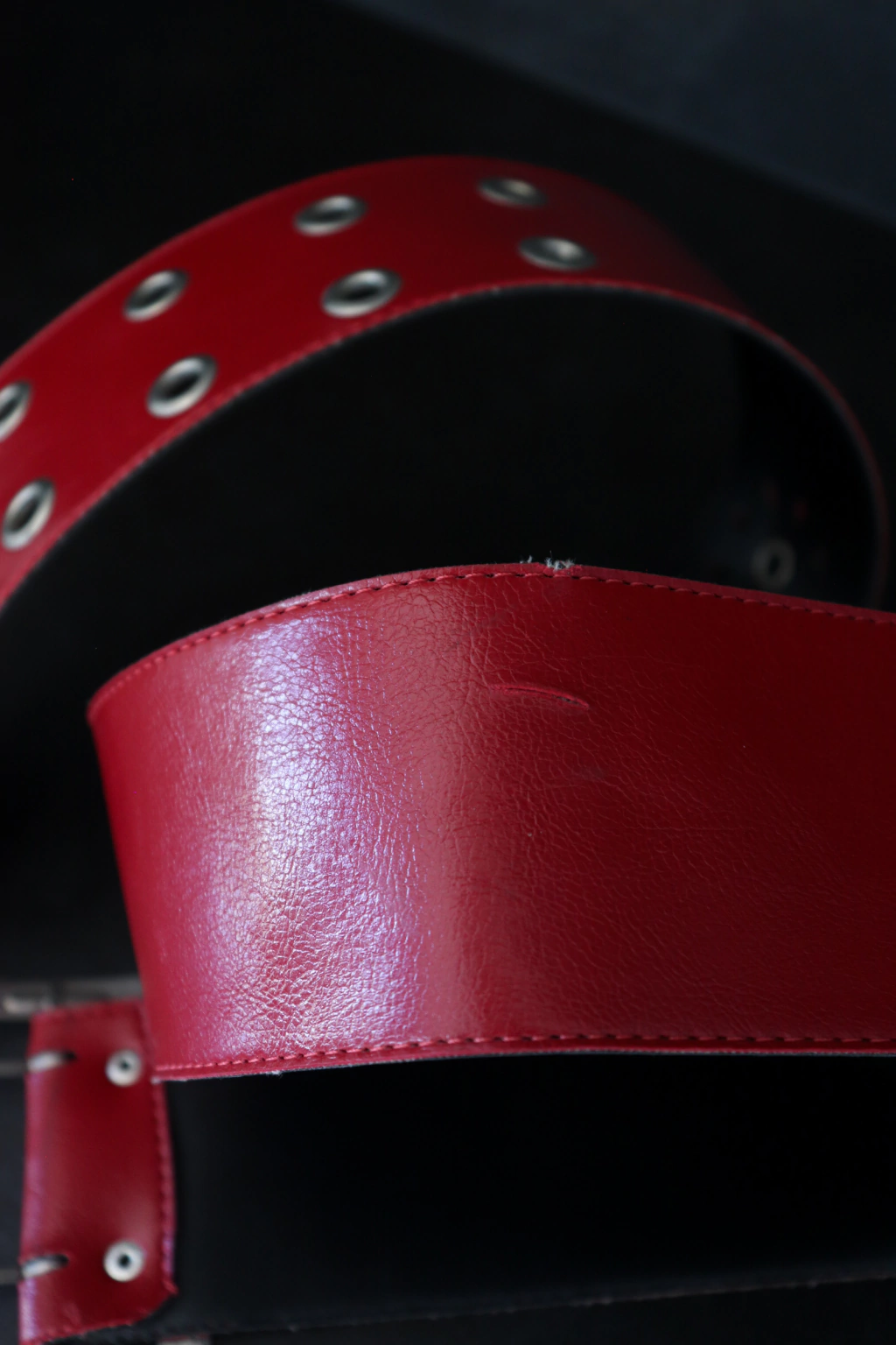 Cinto grosso vermelho com detalhe de ilhós y fivela grande. Condição 9,8/10, vide fotos.