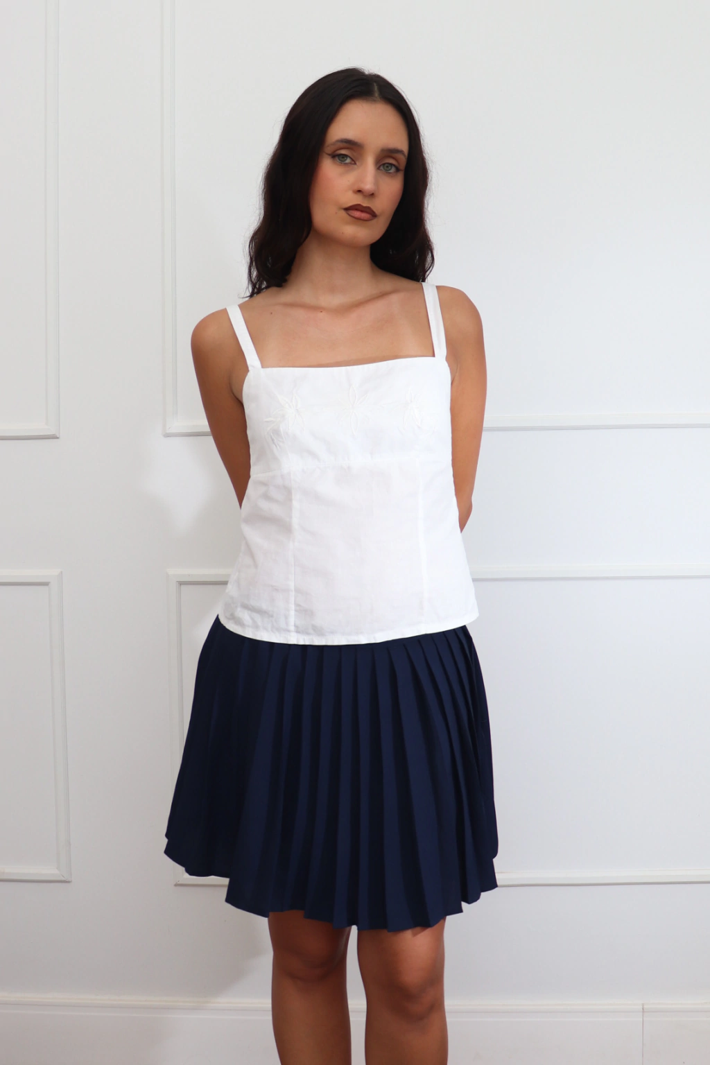 Saia curta azul marinho super plissada da antiga Forever 21. Fechamento por zíper invisível lateral. Tecido 100% poliester.